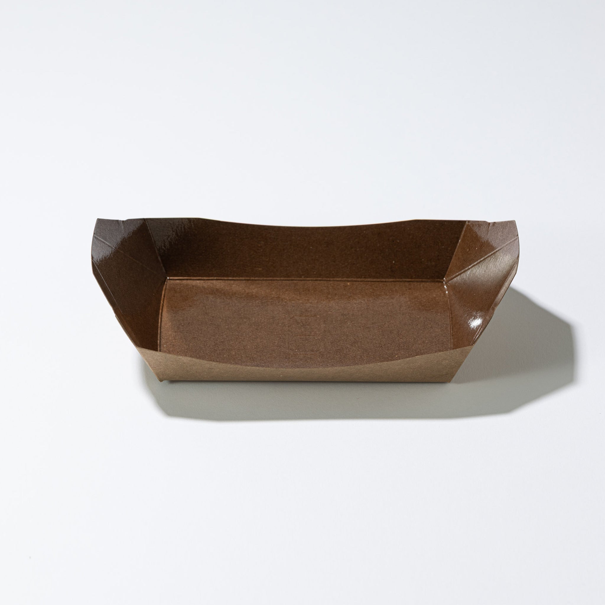 商品説明:落ち着いたトーンで温かみあるモカカラーの舟型紙トレー。内側にはPP(ポリプロピレン)貼り加工を施しており、油分に強く、おしゃれな雰囲気で、テイクアウト・フードイベント・屋台メニューにもぴったりです。