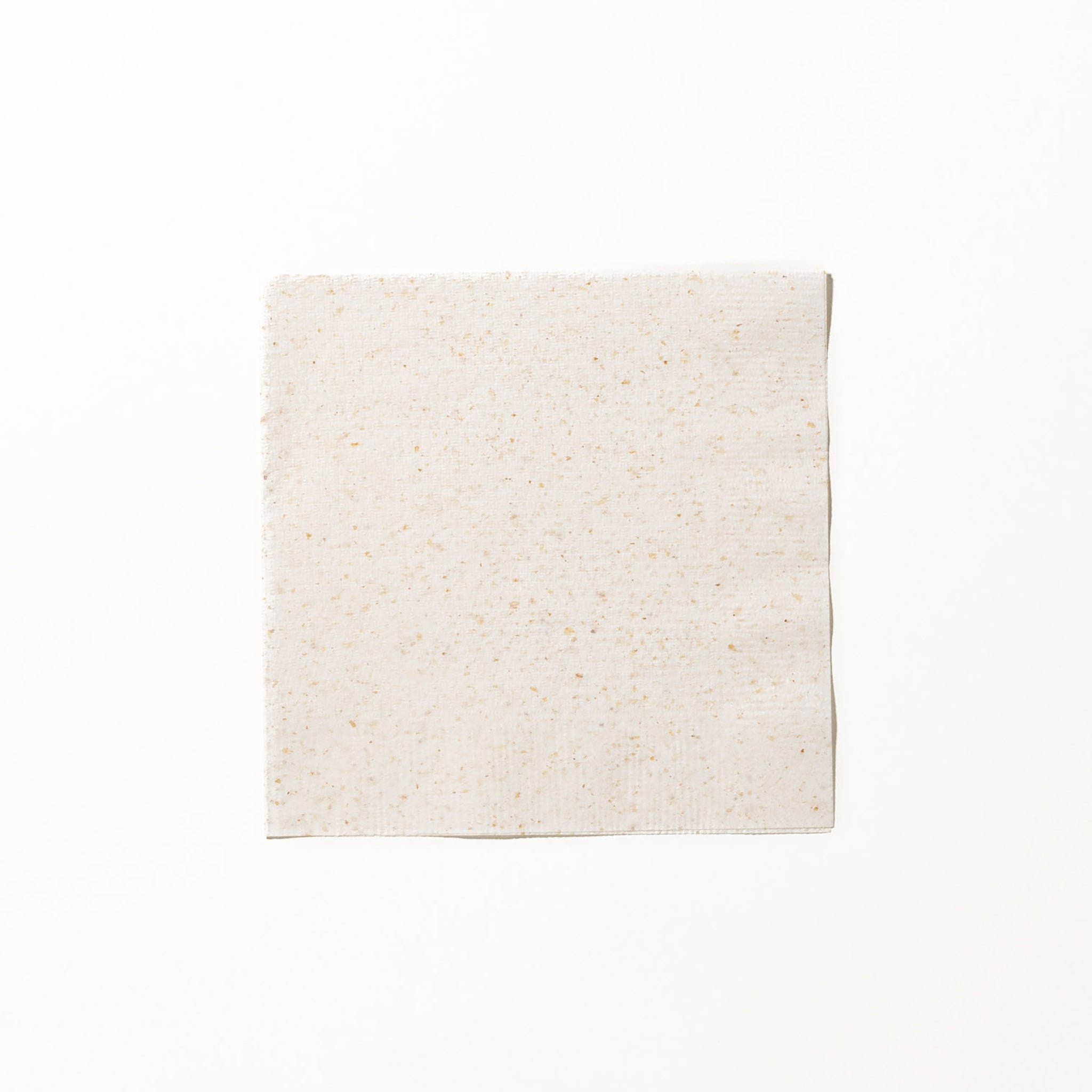 商品説明:やさしい肌触りと高い吸油性。コーヒー生豆の皮「シルバースキン」から生まれた、サステナブルなカフェナプキンです。