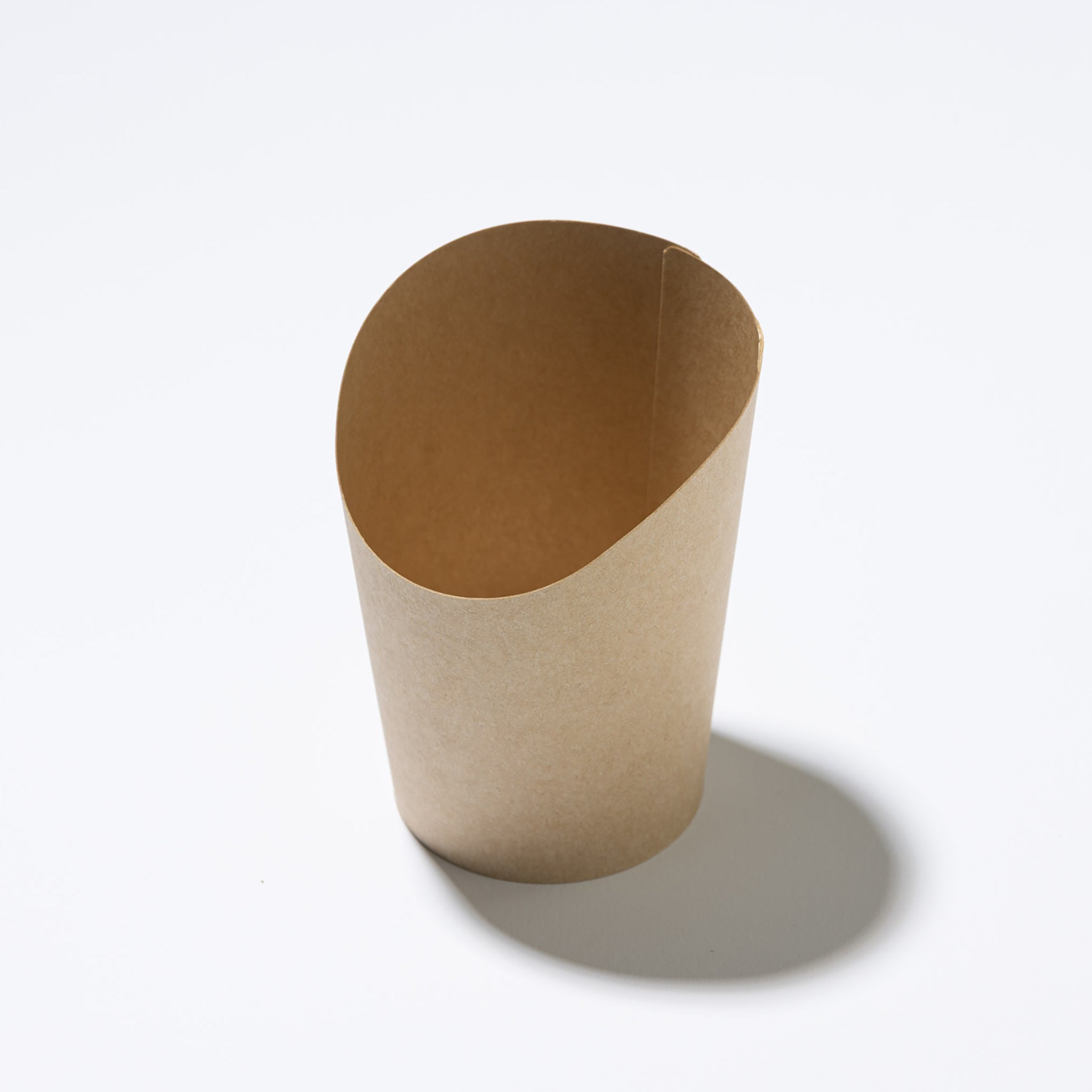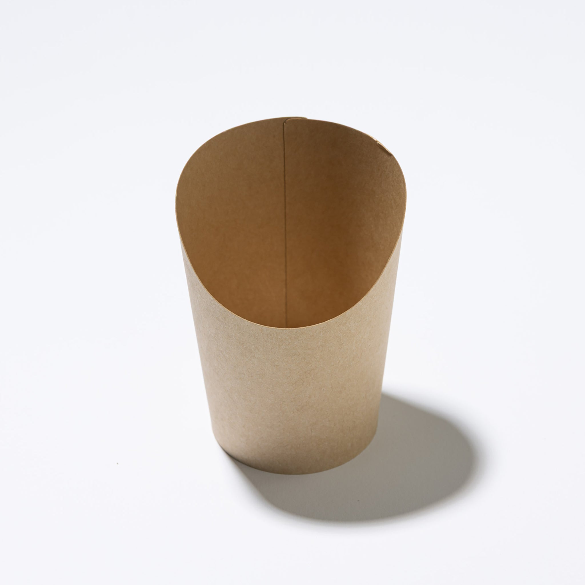 商品説明:クラフト紙使用のおしゃれなスナックカップ。内側ラミネート加工で耐油性◎ フライドポテト・から揚げ・スナック類におすすめです。別売りのコップホルダーにも対応しています。